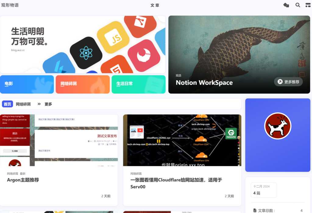 免费构建个人博客Hexo + GitHub + Cloudflare x | 2024-12-17 22:24 | 3,994 | 随笔 66 字 | 几秒读完 参考文章:https://linux.do/t/topic/298986关于书写 Markdown抽空研究下 主题的美化设置还没来得及折腾看下安装效果图 实例:https://blog.auz.cc/ AUZ为Authorization的缩写,“授权,委托”