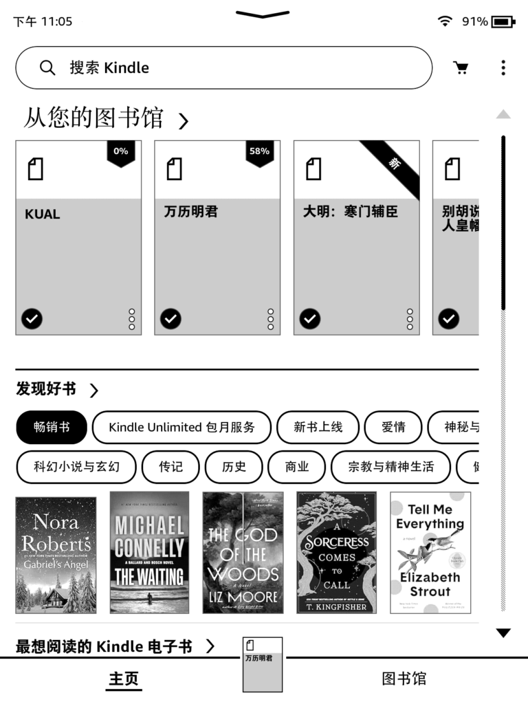• KUAL图书馆不显示:将KUAL文件夹内Update_KUALBooklet_hotfix_18b218e_install.bin复制到Kindle根目录内。kindle设置更新系统。